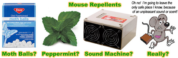 Repellents do not work efficiently like other methods of mouse removal which completely take care of the problem. These so called mouse repellents do not work.This article will explain to readers why not to use repellents to take care of mice problems in your attic.Here are some of the reasons why mice repellents will not work: